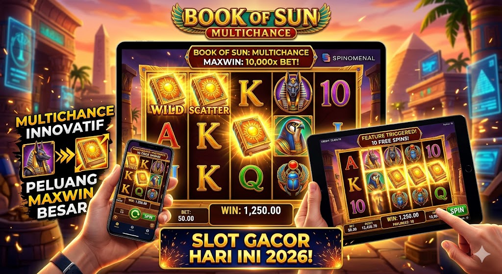 Di tengah dominasi slot bertema klasik, Book of Sun Multichance slot dari Spinomenal justru muncul dengan pendekatan berbeda. Game ini tidak sekadar menghadirkan nuansa Mesir kuno, tetapi juga membawa inovasi nyata melalui fitur multichance yang langsung mengubah cara pemain berburu slot gacor malam hari ini.
